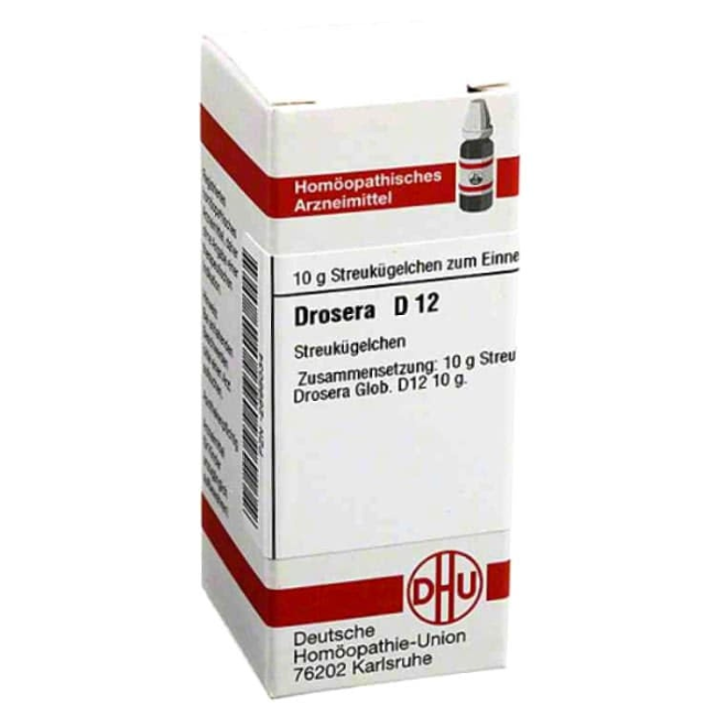 С точки зрения гомеопатии, Drosera D12 оказывает комплексное влияние на организм, главным образом на верхние дыхательные пути. Считается, что активный компонент (Drosera rotundifolia) способствует: