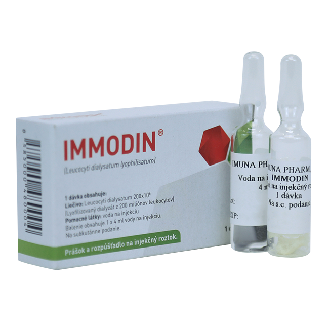 Иммодин – иммуномодулирующий препарат, активным компонентом которого является лиофилизированный диализат из лейкоцитов (200×10^6 клеток). Он применяется для коррекции и усиления иммунного ответа организма при различных состояниях, сопровождающихся снижением защитных функций.