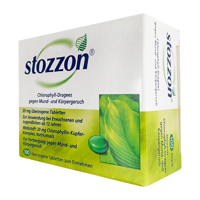 Стоззон хлорофилл используется для предотвращения неприятного запаха изо рта и тела.