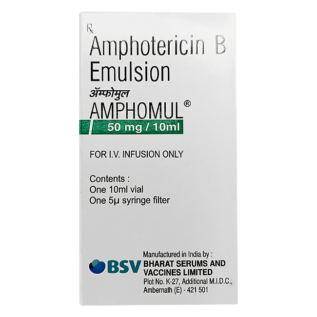 Amphomul — эмульсионная форма амфотерицина B для внутривенного введения. Принадлежит к системным полиеновым противогрибковым средствам и характеризуется уменьшенным риском нефро‑ и гепатотоксичности по сравнению с классической дезоксихолат‑формой благодаря включению действующего вещества в масляно‑водную эмульсию.