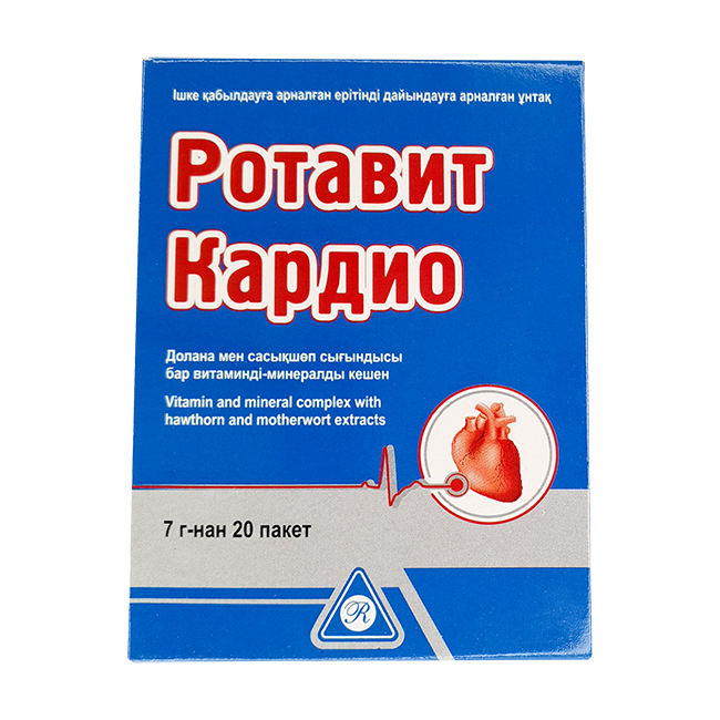 Пероральная порошковая добавка к пище Ротавит Кардио представляет собой комплекс нутриентов, направленный на поддержку организма в целом, и сердечно-сосудистой системы в частности. Основные эффекты препарата: