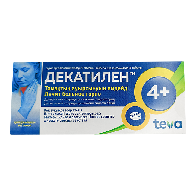 Декатилен - это лекарственное средство, используемое для лечения заболеваний горла и полости рта. Он содержит комбинацию действующих веществ: Деквалиния хлорида (0,25 мг) и Дибукаина гидрохлорида (0,03 мг). Эти компоненты обладают антимикробными и обезболивающими свойствами, которые помогают устранить дискомфорт и болевые ощущения при заболеваниях горла.