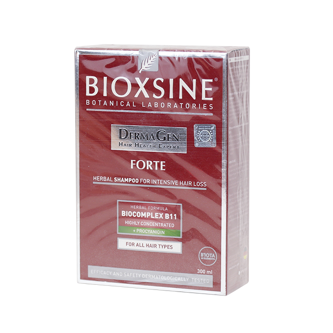 Биоксин Форте —шампунь на основе растительного биокомплекса B11, предназначенный для интенсивной терапии диффузного и очагового выпадения волос. Программа применения направлена на укрепление волосяных фолликулов, улучшение микроциркуляции кожи головы и восстановление нормального цикла роста волос.