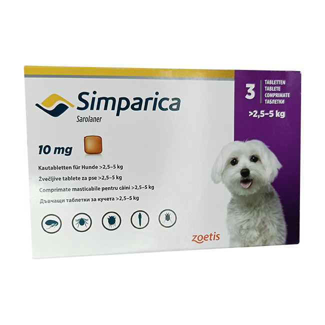 Отзывы о Симпарика для собак 10мг 2,5-5кг ГЕРМАНИЯ! табл. для пер. пр. N3!